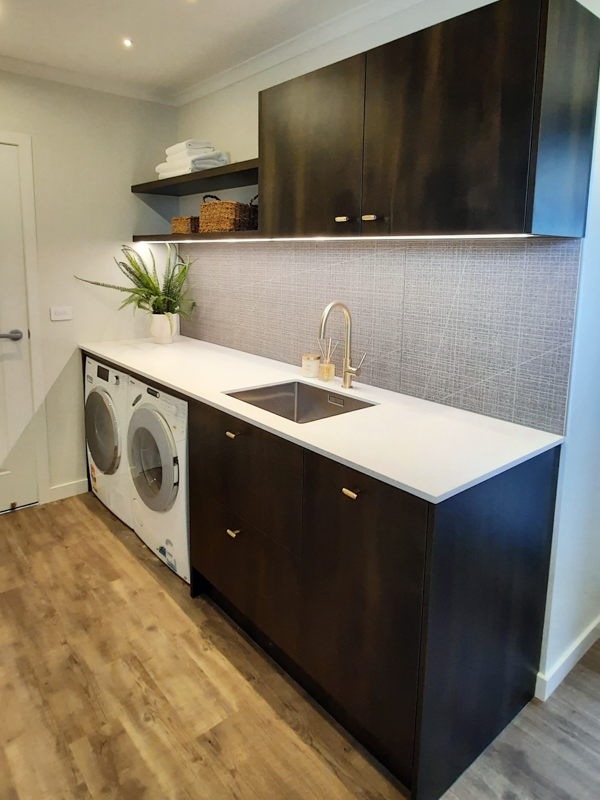 Step into luxury and functionality with our recent transformation of a bathroom and laundry on Browns Road. At the heart of this renovation is a spacious shower adorned with elegant gold handles and tapware, complemented by contemporary light fixtures that illuminate the space with a modern flair. The inclusion of sleek mirrors, stylish sinks, and pristine benches enhances both the aesthetic appeal and practicality of the room, offering a harmonious blend of design and functionality. This project exemplifies our commitment to crafting spaces that not only inspire but also elevate everyday living.