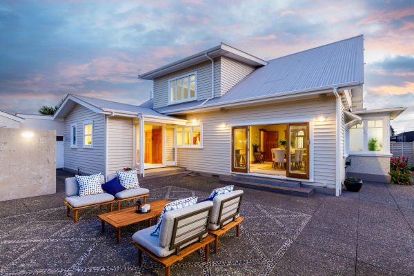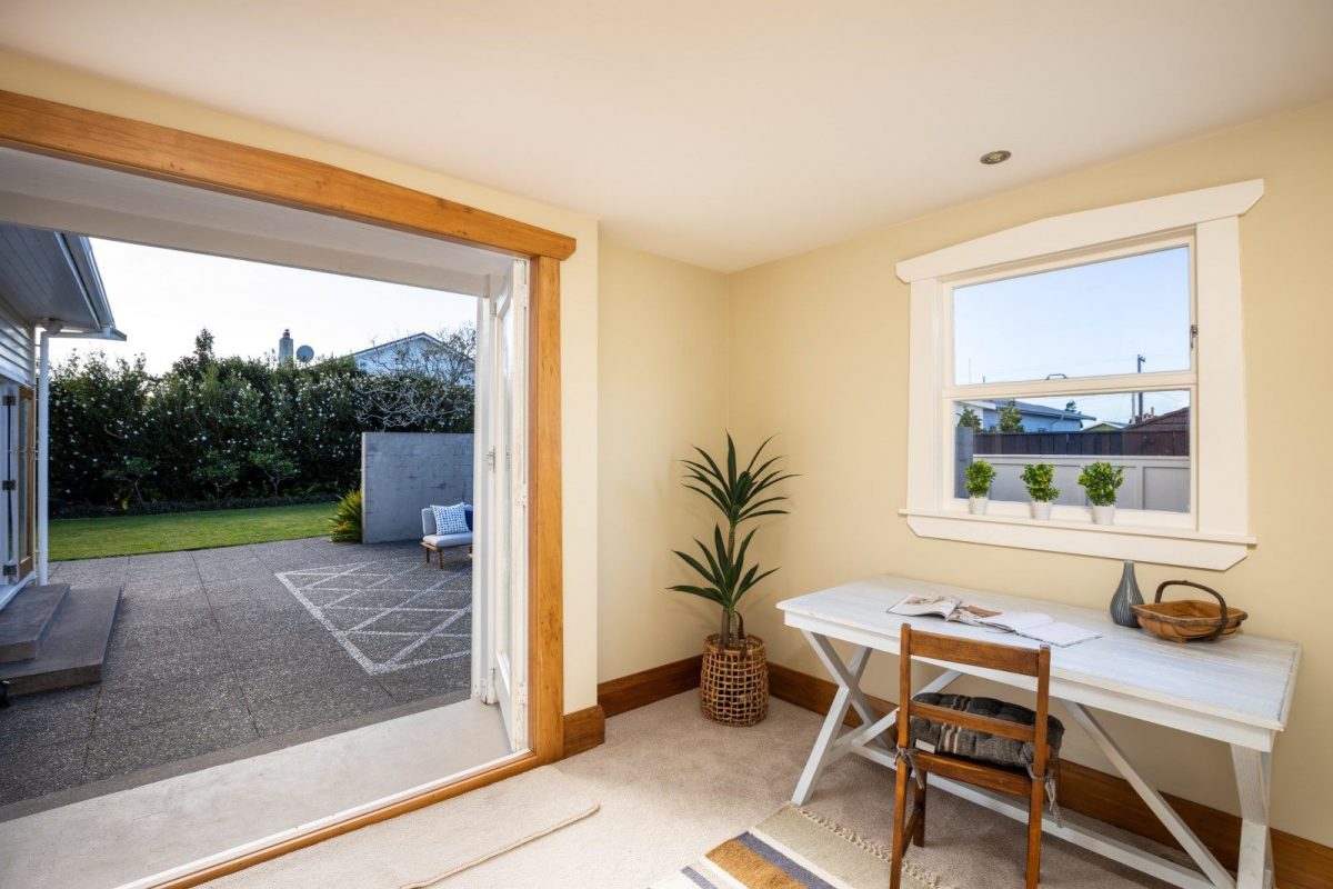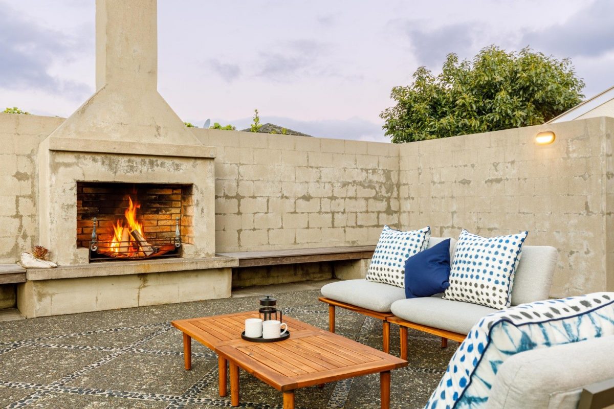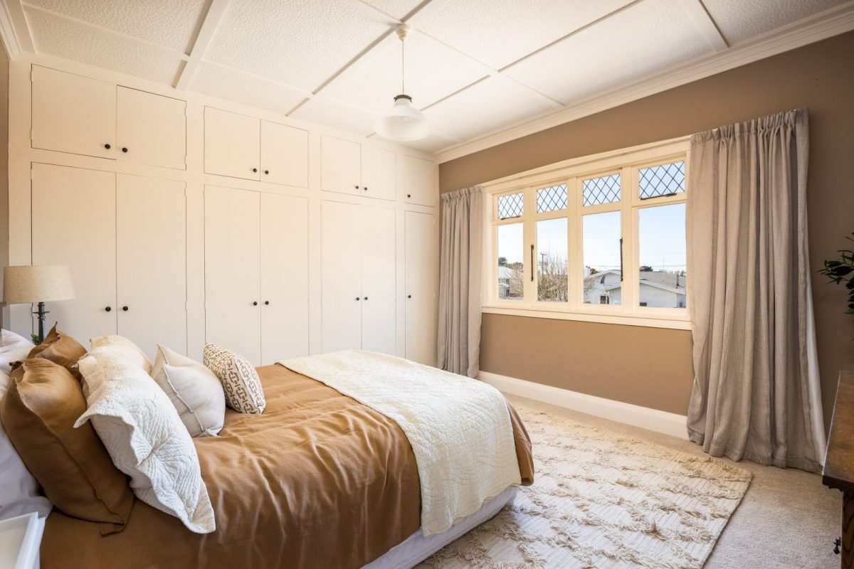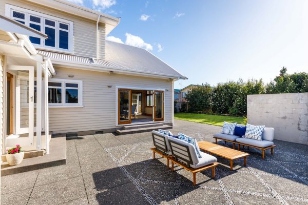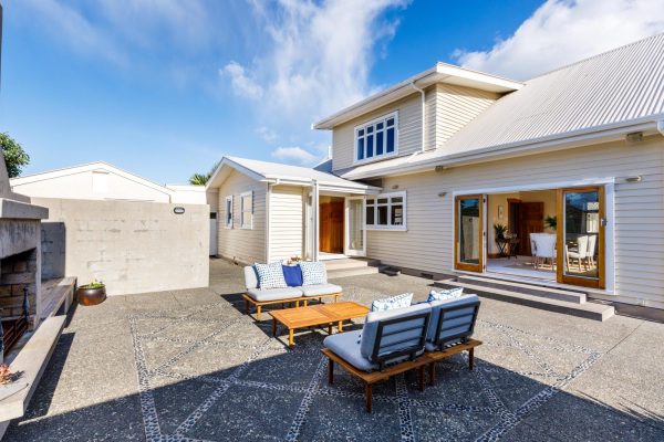 While staging this beautiful home we chose traditional furnishings such as the beaded dining chairs and slouchy linen sofas and incorporated a modern twist in our styling to compliment the home. In the bedrooms we used oak furnishings to soften the space and to give the bedrooms some character while using soft linens to lighten and brighten each room. We freshened up the space with plenty of greenery. The outdoor furnishings make a big impact on enhancing the flow between the open plan living and outdoor courtyard with a stunning fireplace.