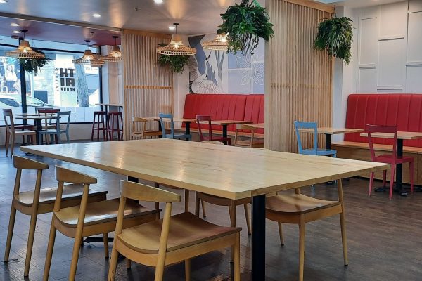 Our brief was to make the interior light, bright and family-friendly. With this in mind, we added more seating options to be inclusive to the solo eater and large families alike, and to add dimension to the space through texture, colours and lighting.